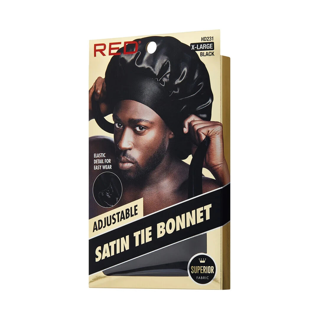 RED BY KISS ADJUSTABLE SATIN TIE BONNET X-LARGE #HD231 BLACK