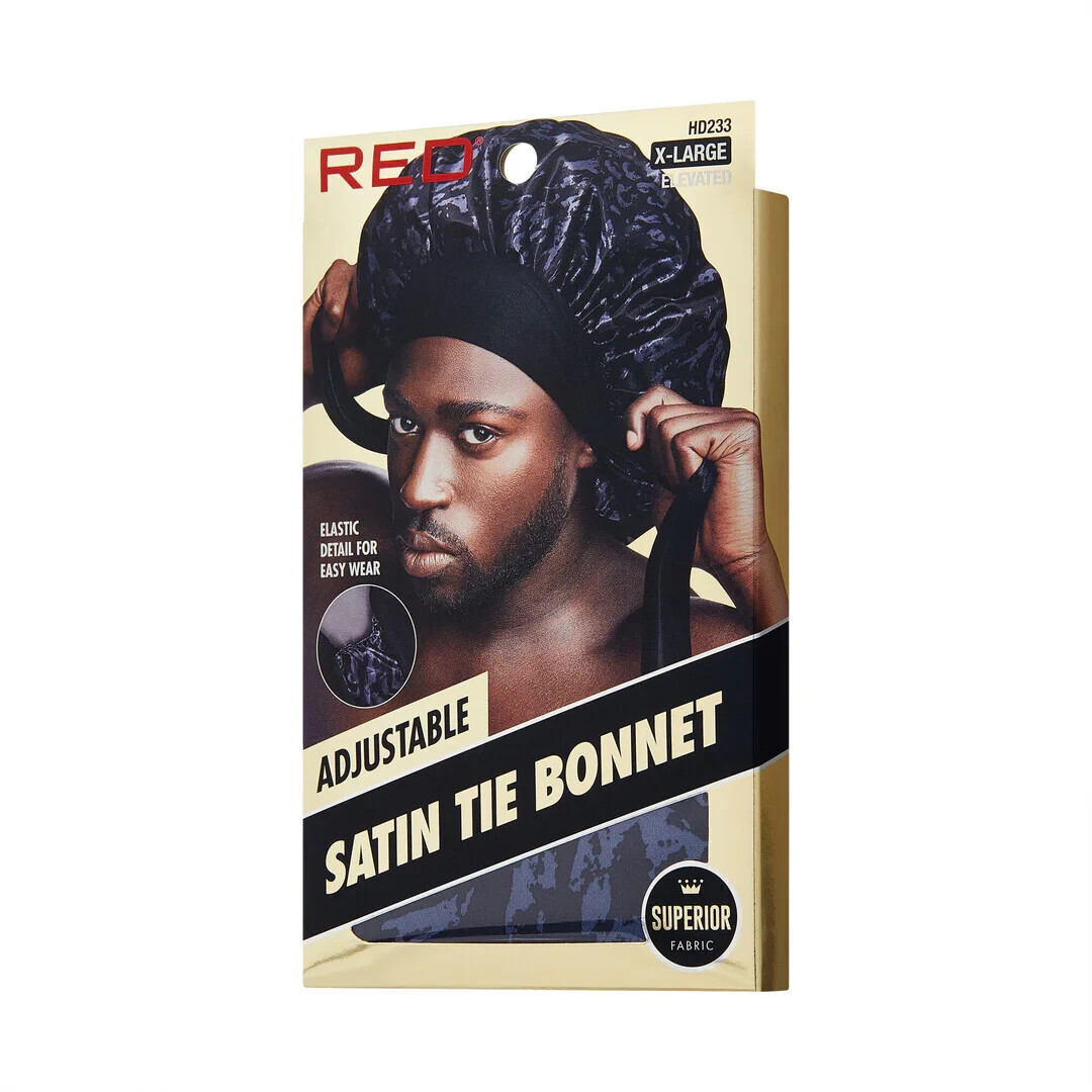 RED BY KISS ADJUSTABLE SATIN TIE BONNET X-LARGE #HD233 ELEVATED