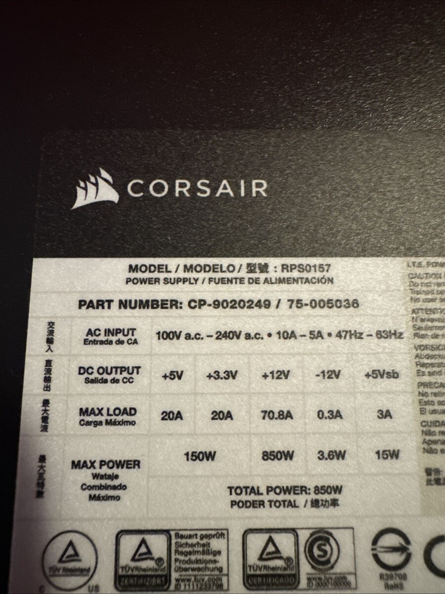 Corsair RM850x, Power Supply, Untested No Box Or Power Cord