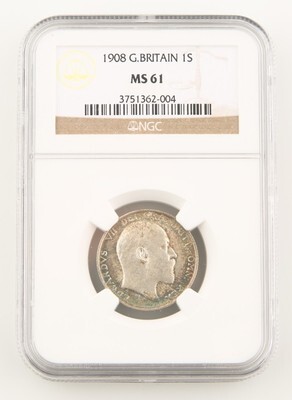 1908 Great Britain Shilling Silver Coin MS-61 NGC Edward VII England KM#800