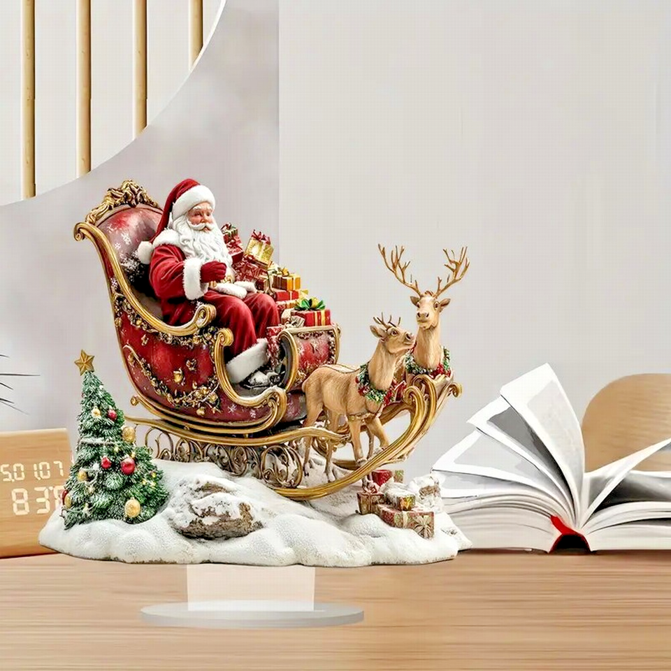 Santa Claus In His Reindeer Drawn Luxury Sleigh 2D Flat Desktop Decoration