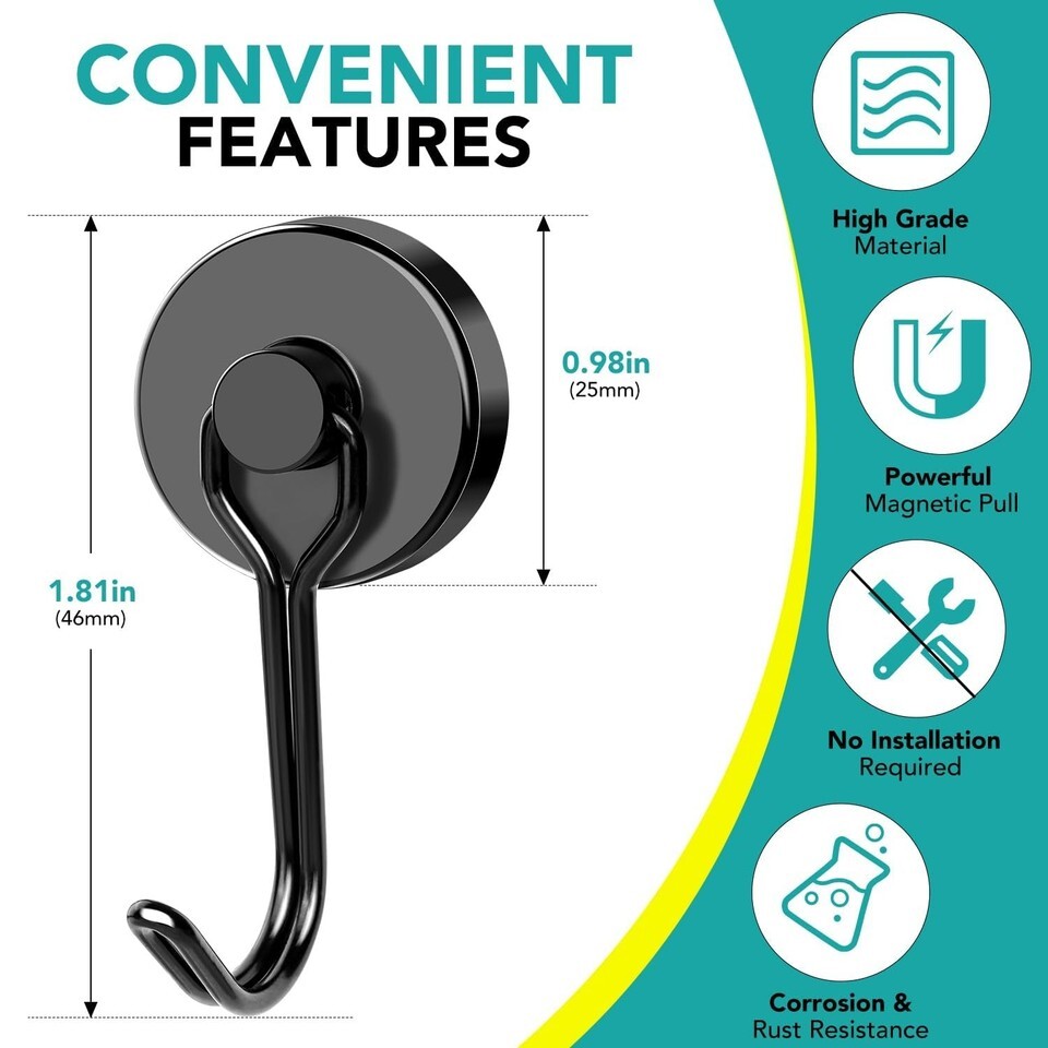 DIYMAG Black Magnetic Hooks, 80LBS Strong and 32 similar items