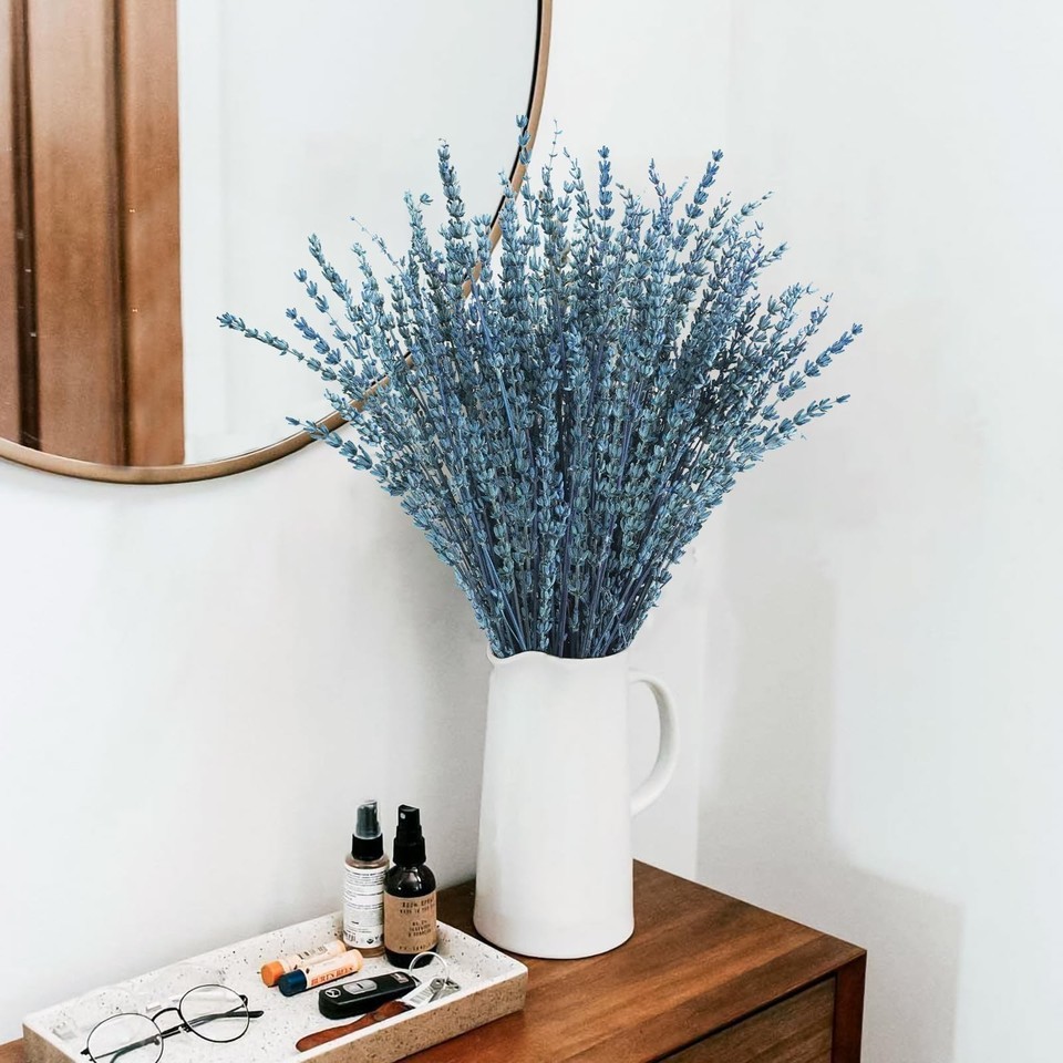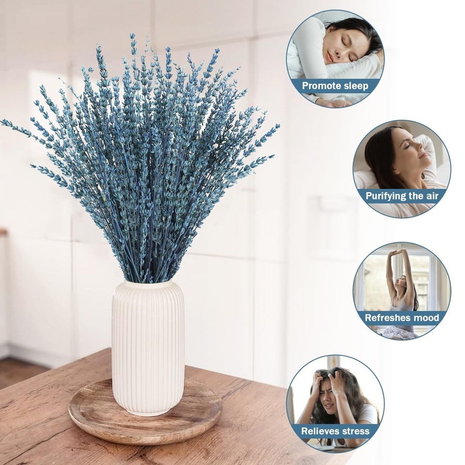 Uieke Dried Lavender Flowers 16" Preserved Blue Bouquet Home Fragrance Vase Craf