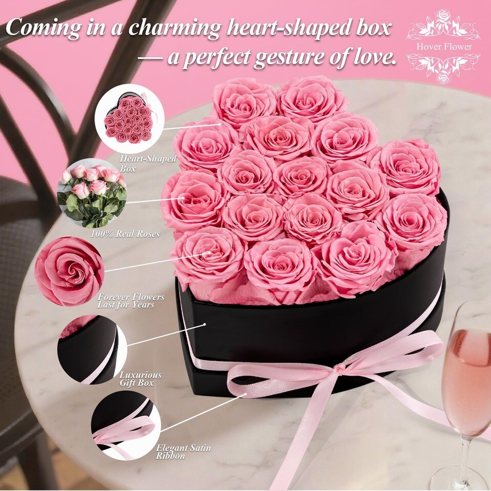 Hover Flower Forver Preserved Roses in a Box, Flowers for Her,Eternal Roses Pres