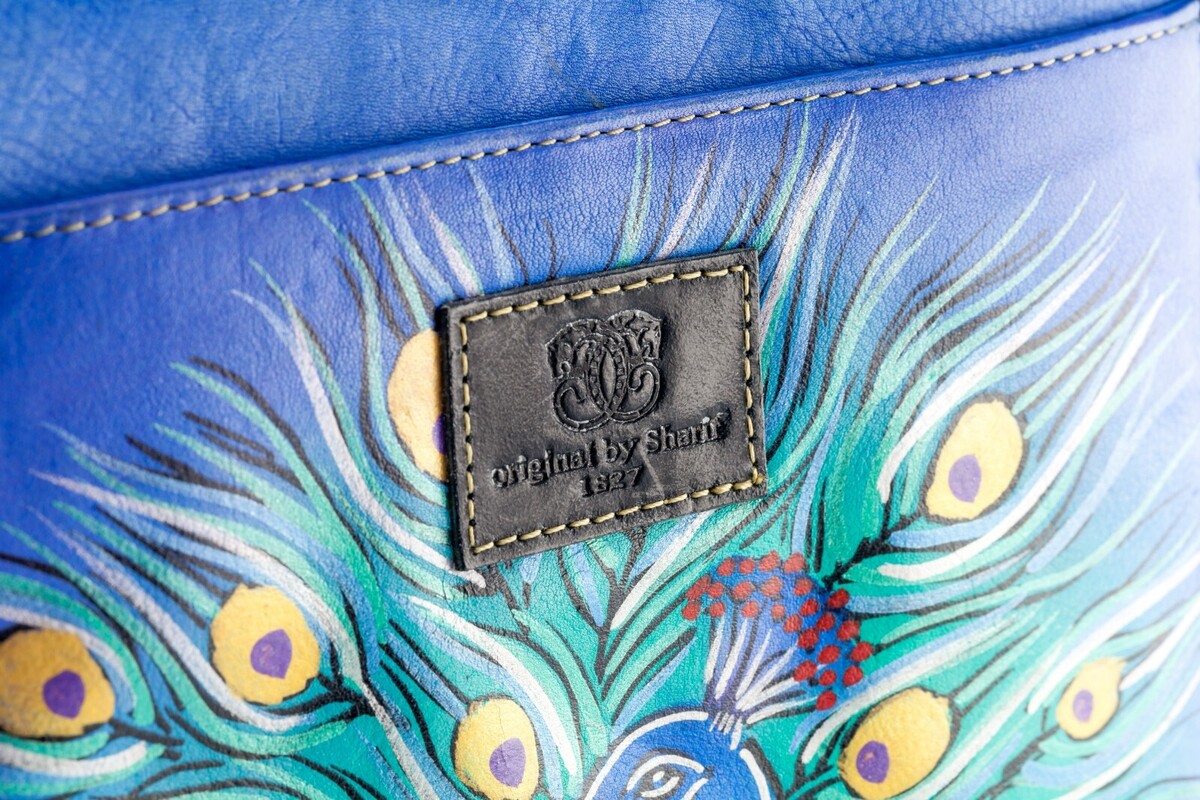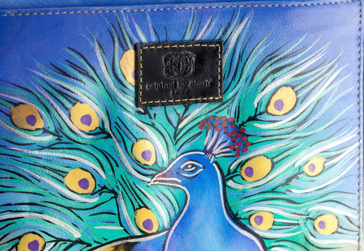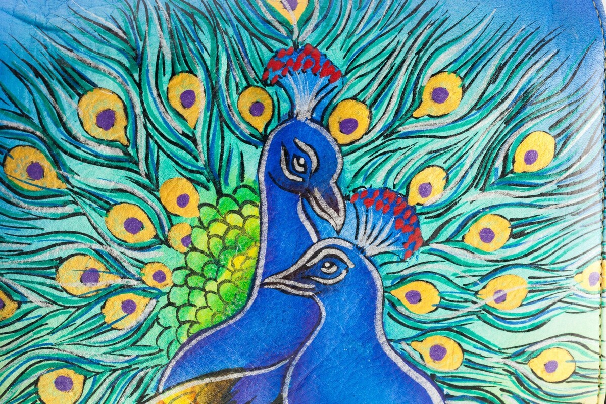 Bolso Mensajero Tote De Cuero Pintado A Mano Sharif Con Pavos Reales