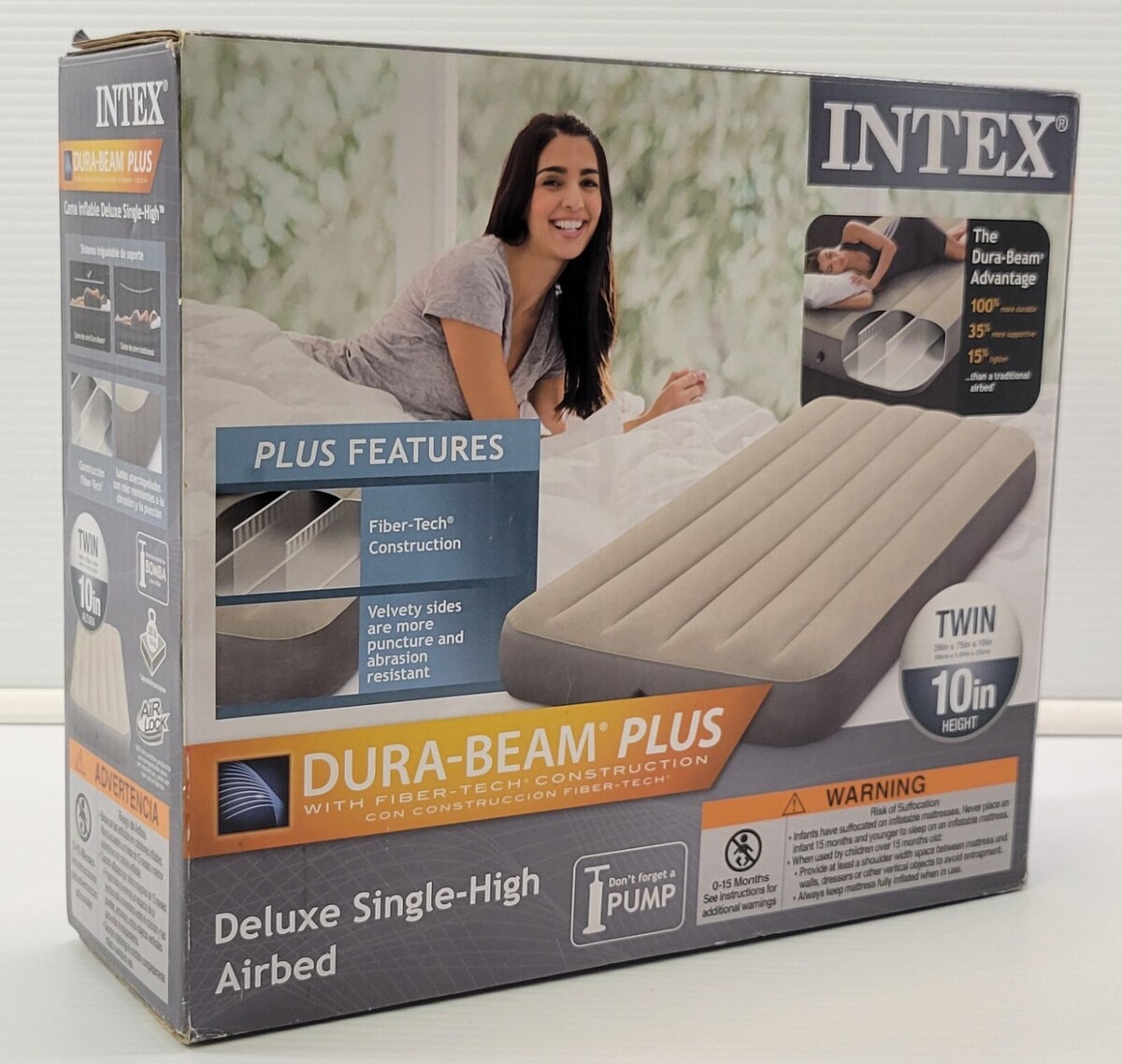 R) Intex Dura-Beam Plus Deluxe Twin Single High Airbed Air Mattress Bed