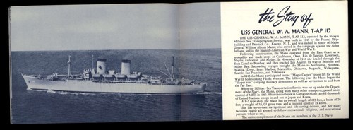 USS GENERAL WILLIAM A. MANN T-AP 112- 1952 the SHIP I SAILED ON booklet MAP -