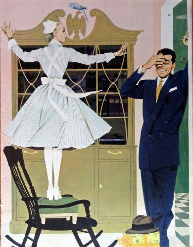 Fredric Varady, Color Illustration, Print Art (Maid standing on top of chair ...