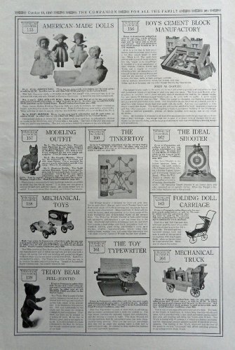 Toy Typewriter, Tinkertoy, mechanical toys, folding doll carriage. 1916 Print...