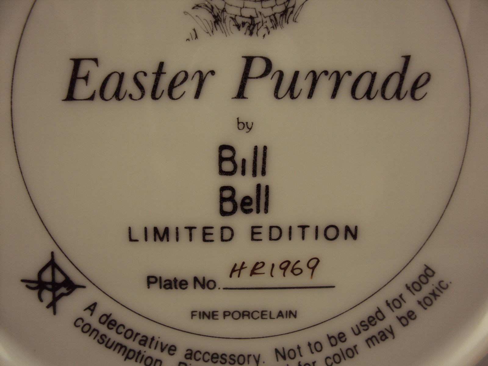 Bill Bell Fine Porcelain Collector's Plate ~ Easter Purrade
