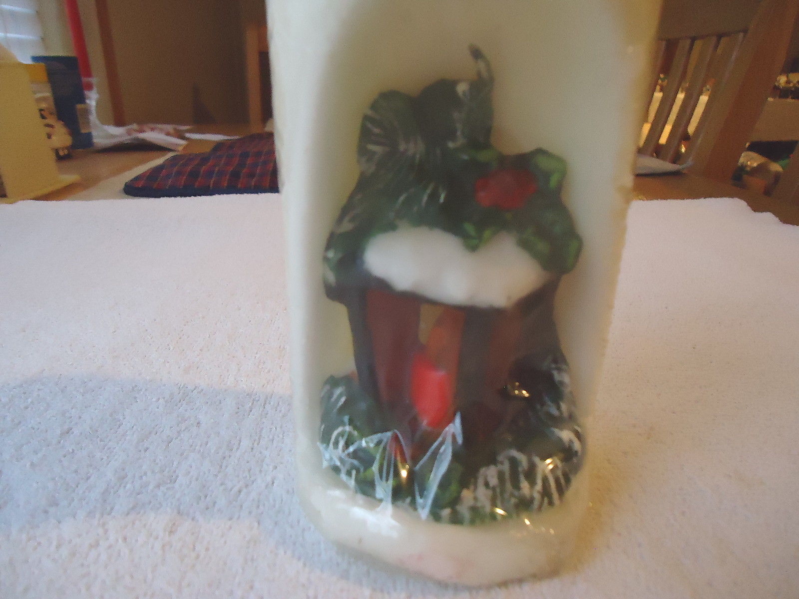 Here is a Vintage Candle With Cut Out Of Light In Lamp Inside " AWESOME COLLECTABLE PIECE ".As you can see in the pics the plastic has some minor tears,holes,etc. but it is still in very good condition for its age.The candle also has a few chips out of it where the plastic is tore but they are not very bad at all as you can see in the pics.This candle stands about 6 1/4 inches tall and is about 3 inches in diameter at the base.If you have any concerns or questions about this item(s) please ask before bidding / purchasing because this item(s) is being SOLD AS IS.Thank You.