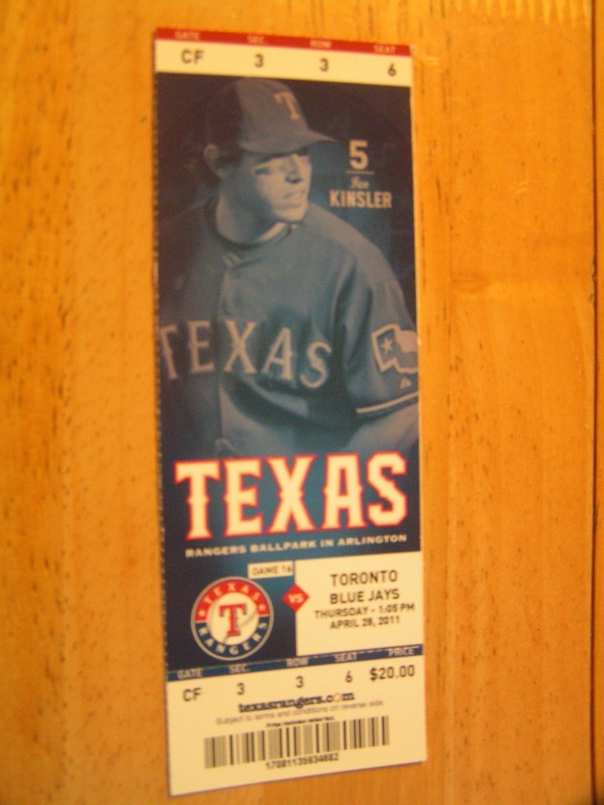 2011 Texas Rangers Full Unused Ticket Stub Vs Toronto Blue Jays 4/28