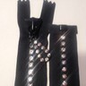 12 Zippers - Black Closed-Bottom 14" Rhinestone Crystals Zippers D418.01-12zips