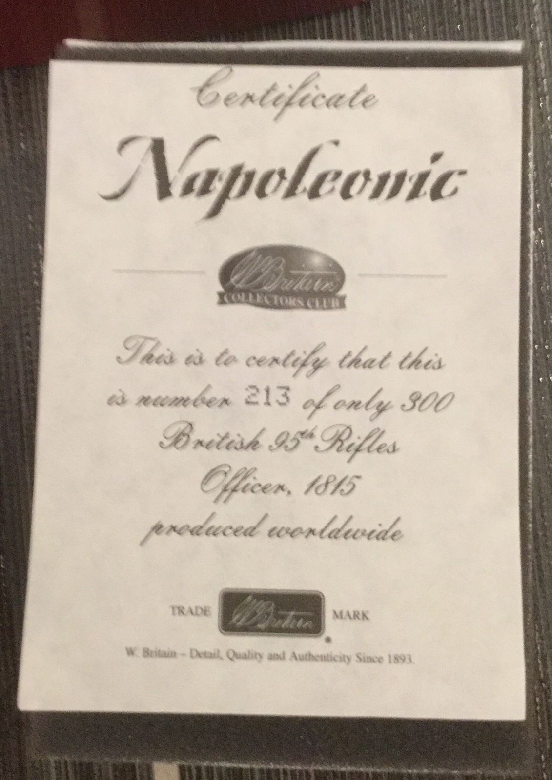 BRITISH 95th rifles officer 1815. Limited edition .# 213 of 300.. Very rare. Like new condition. With box and limited edition certificate.