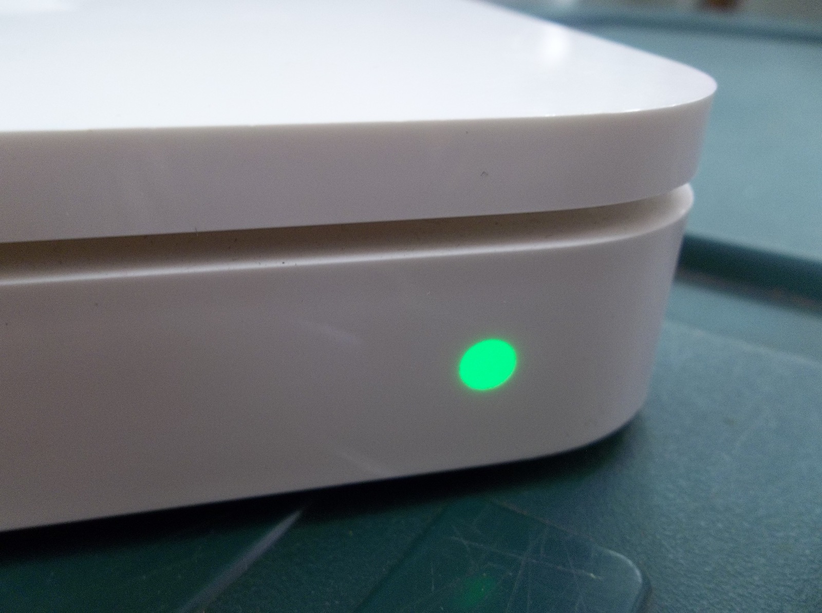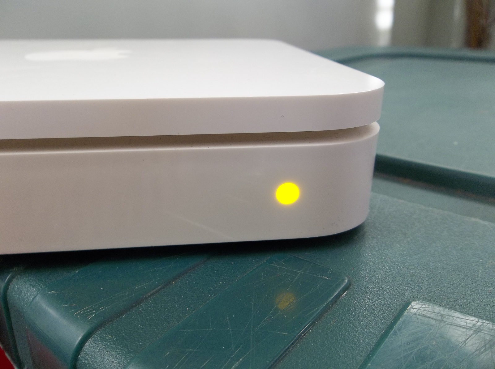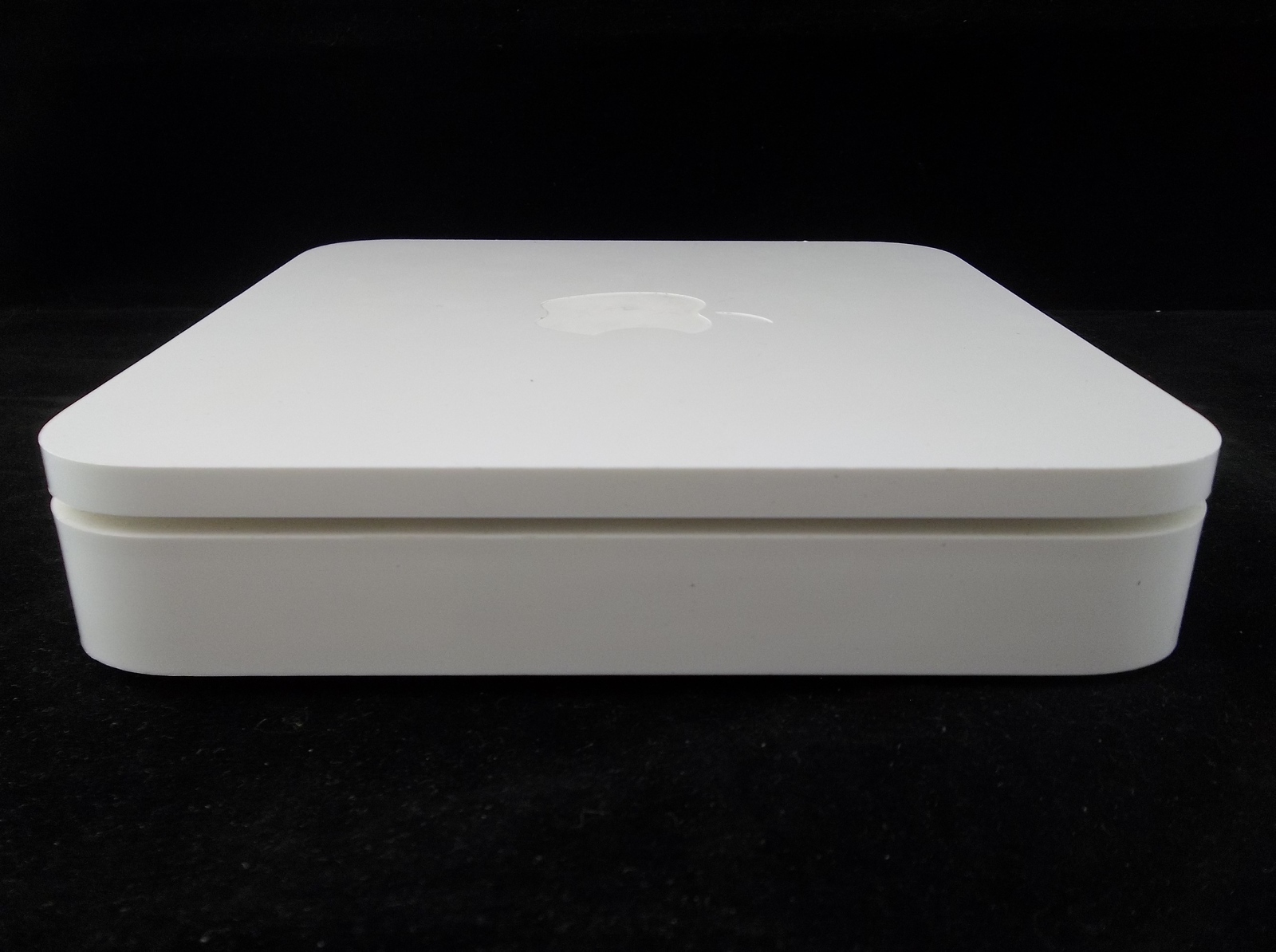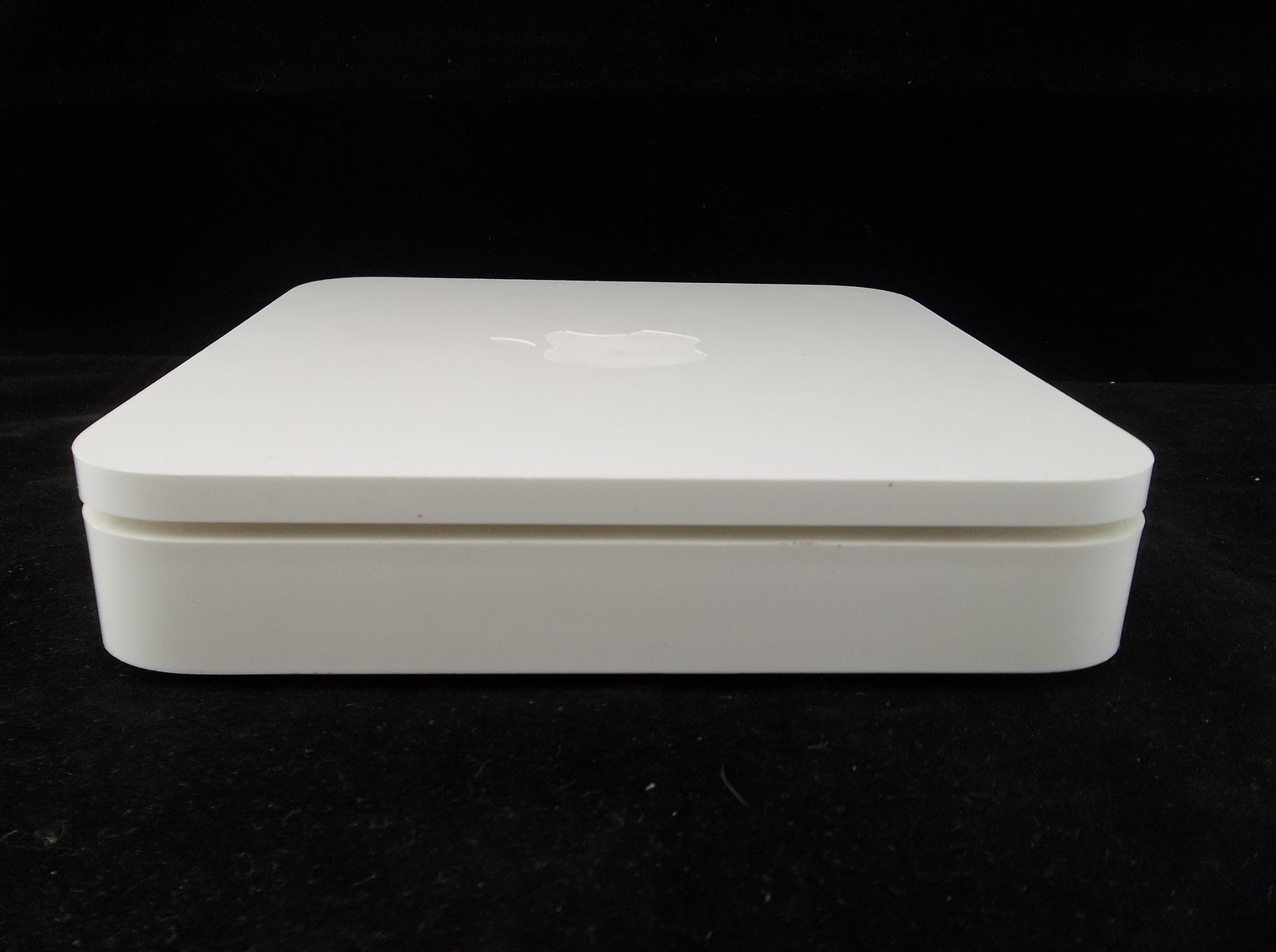 Condition: The router is in good used condition. The exterior casing is in good shape. It has some marks and scratches from age, use, and storage. All connections look to be in good shape. The power cord has some marks on it from use but it has no cuts or breaks. The power brick isn't cracked or broken. I have not tested the working condition of this device since I don't use MAC's. I did plug it in and it did appear to power up. A green light lit up as soon as I plugged it in, it went off, then a yellow/orange light stayed on.