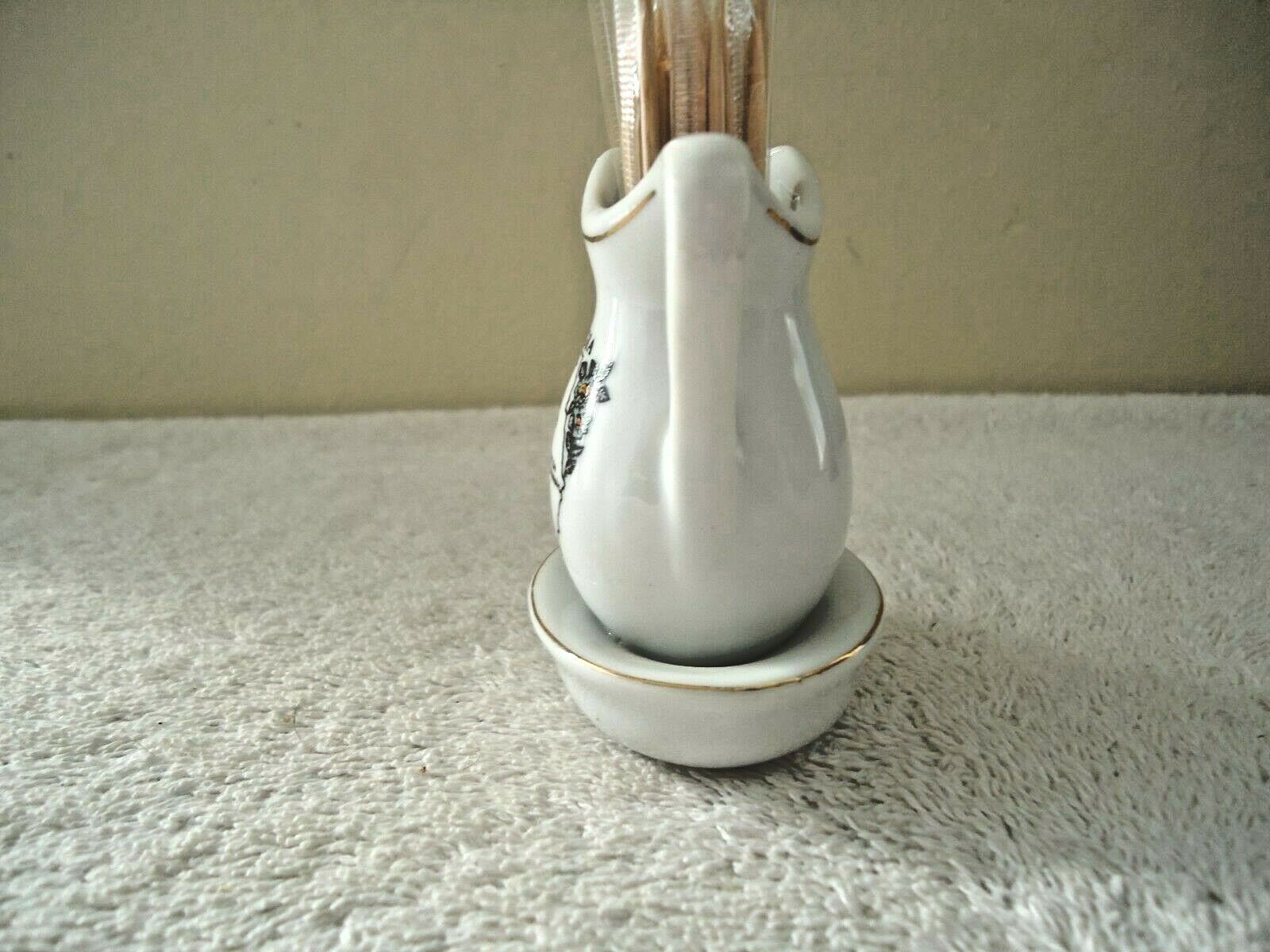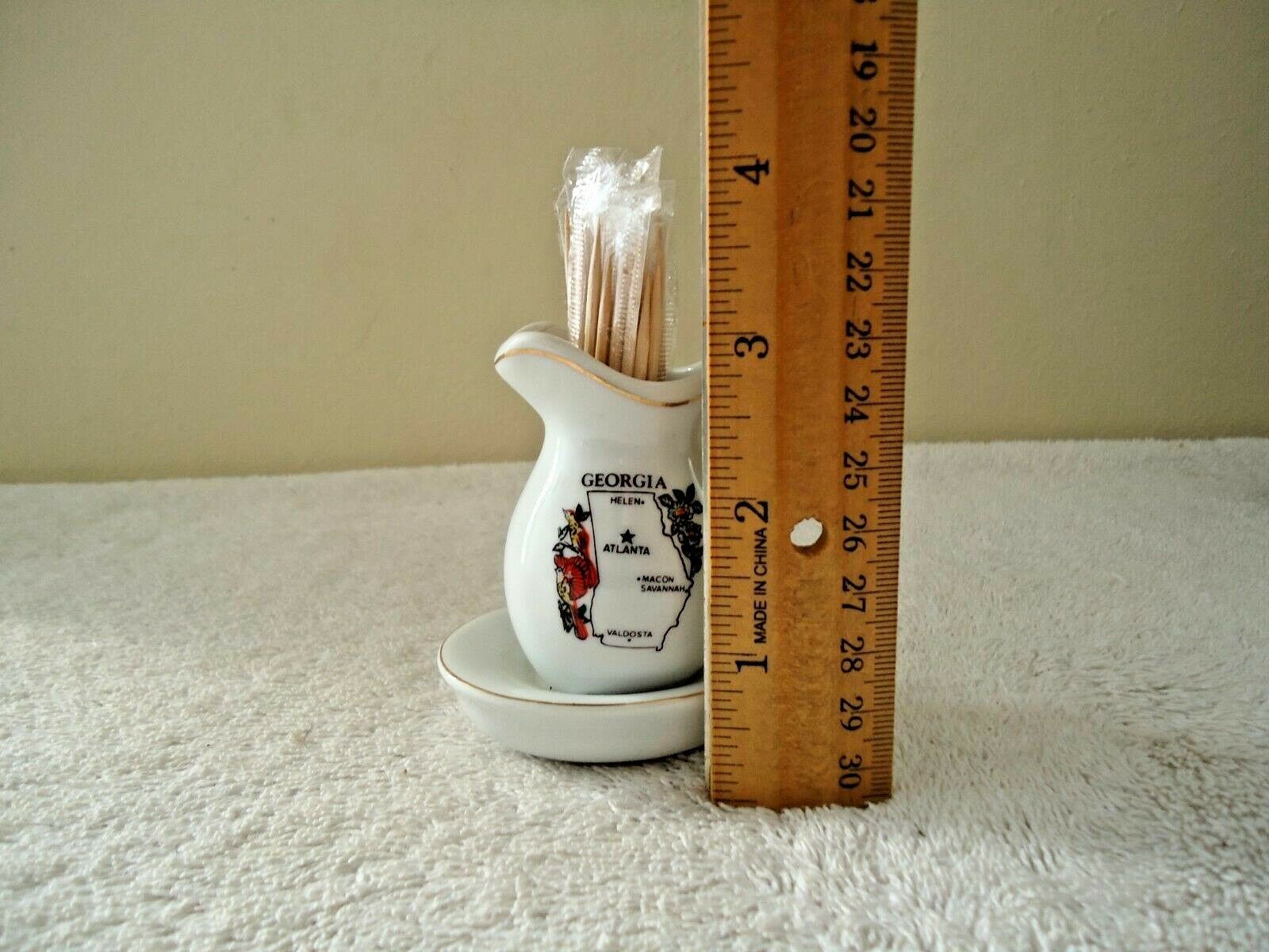 Here is a Vintage Georgia Themed Pitcher Bowl Shaped Toothpick Holder With Some Toothpicks " BEAUTIFUL COLLECTIBLE ITEM ".This is a must for any collector,or decorator wanting that vintage retro look.The pics do not do this item(s) justice.If you have any concerns or questions about this item(s) please ask before bidding / purchasing this item(s).Thank You.-(PC47)