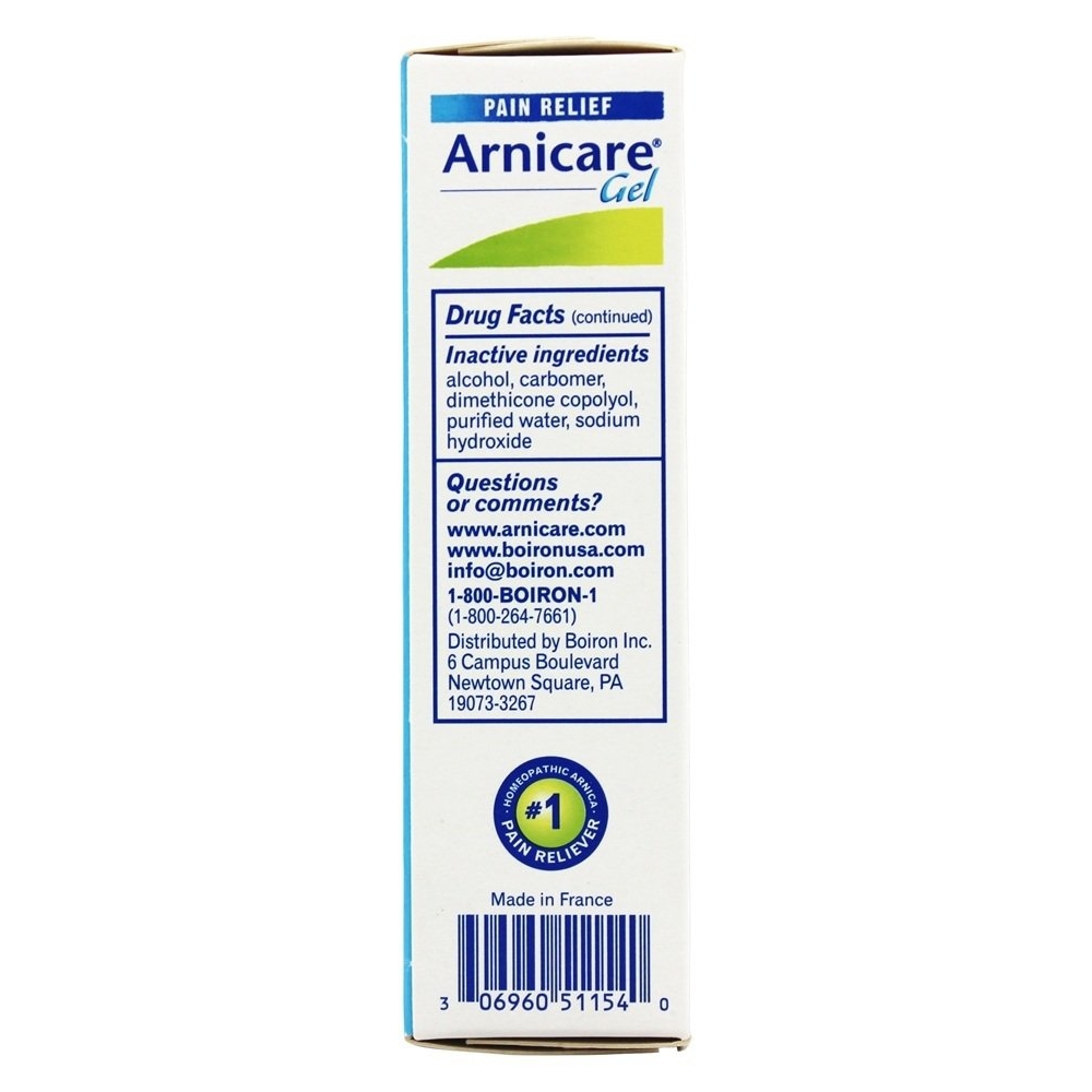 Boiron Arnicare Pain Relief Arnica Gel is a homeopathic remedy ideal for relief of muscle aches and stiffness, due to minor injuries, overexertion, falls, and blows. Boiron Arnicare Pain Relief Arnica Gel reduces pain, swelling and discoloration from bruises. Homeopathic medicines are diluted dosages of highly concentrated medicines that are believed to help you and your illnesses in a healthier manor. Boiron Arnicare Pain Relief Arnica Gel is a homeopathic remedy ideal for relief of muscle aches and stiffness, due to minor injuries, overexertion, falls, and blows. Boiron Arnicare Pain Relief Arnica Gel reduces pain, swelling and discoloration from bruises.