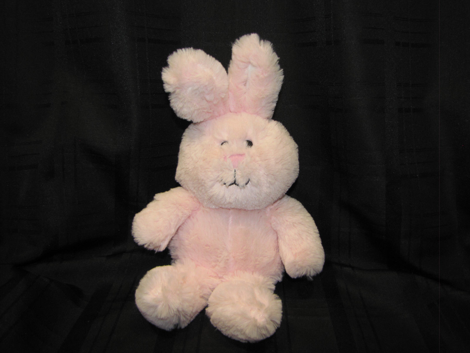 ANIMAL ADVENTURE 2015 PINK BUNNY RABBIT FLUFFY CREAM EARS BLACK EMBROIDERED FACE / SMILE MEASURES 13" FROM TIPS OF EARS TO FEET STANDING