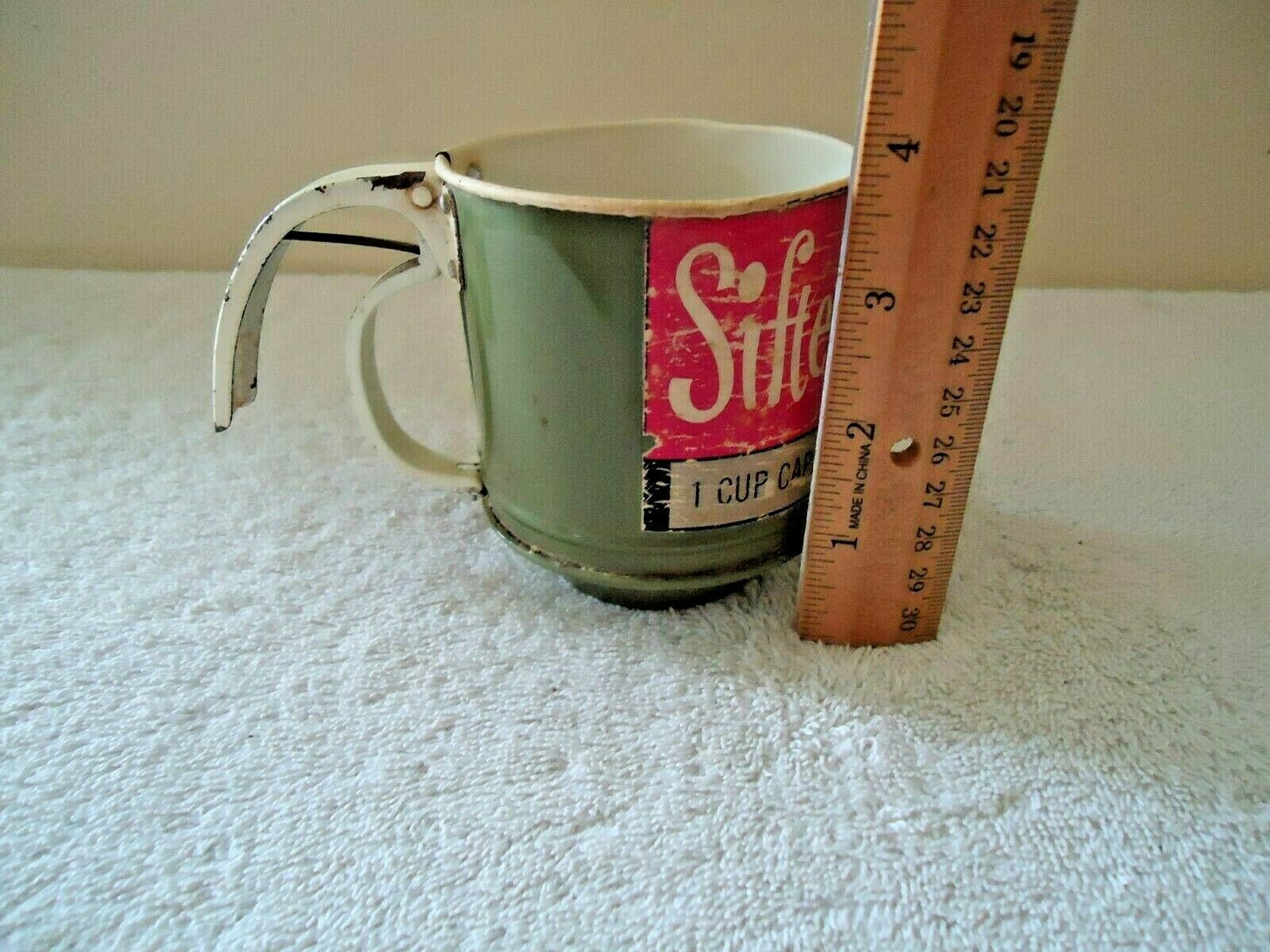 Here is a Vintage Aluminum Housewares Sifter 1 Cup Capacity " GREAT COLLECTIBLE ITEM ".This is a must for any collector,or decorator wanting that vintage retro look.If you have any concerns or questions about this item(s) please ask before bidding / purchasing this item(s).Thank You.-(BS3)
