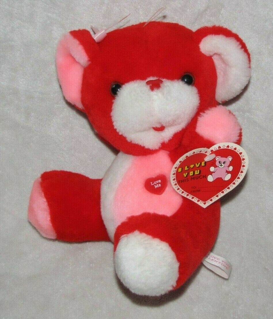 Commonwealth Stuffed Plush Valentines Day Red White Pink Teddy Bear Love Me 1985