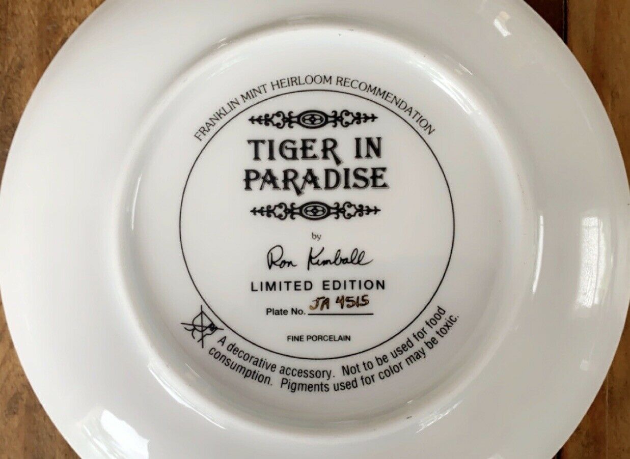 Franklin Mint Tiger in Paradise Collector Plate - Ron Kimball - Limited Edition