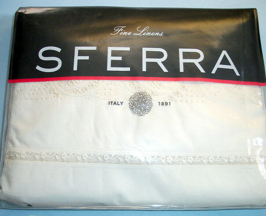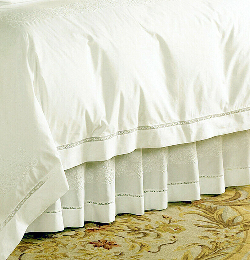 Sferra Francesca Twin Bed Skirt Ivory Hand Embroidery Lace Inset 3 Panel New