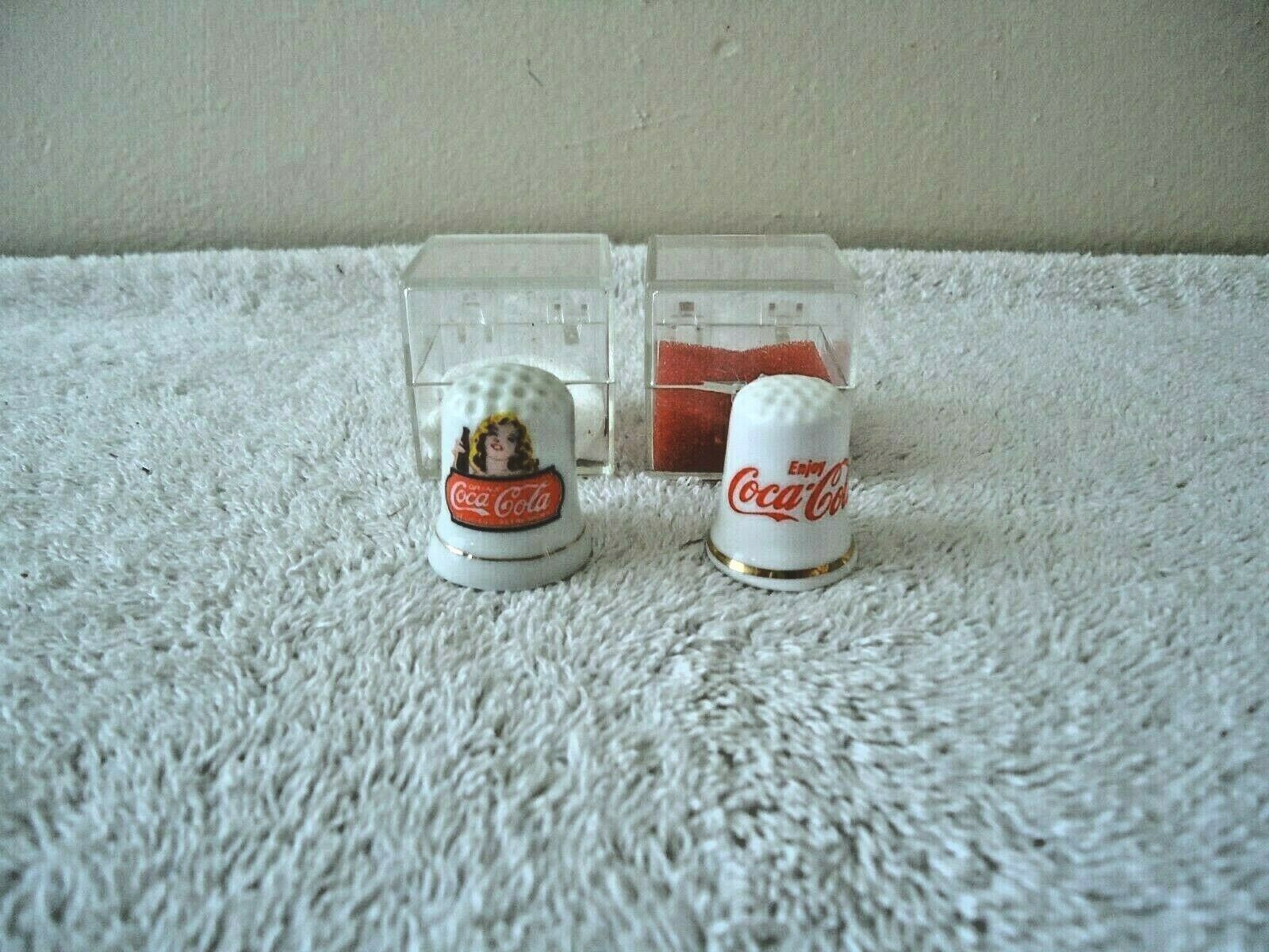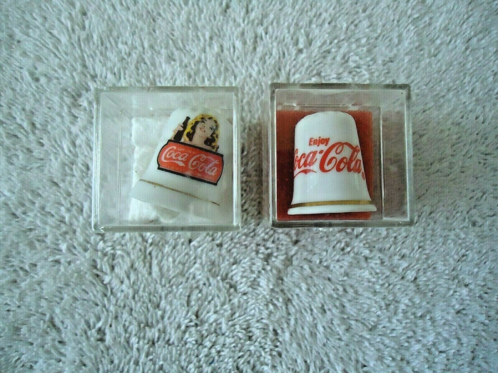 Vintage Lot Of 2 Coca Cola Themed Thimbles In Plastic Cases " BEAUTIFUL ITEMS "