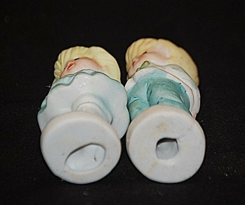 Old Vintage Boy & Girl Blue & Green Porcelain Figurines Shadow Box Shelf Decor