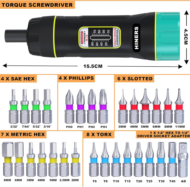 Adjustable Torque, Interchangeable Bit, Non-Slip Grip |
