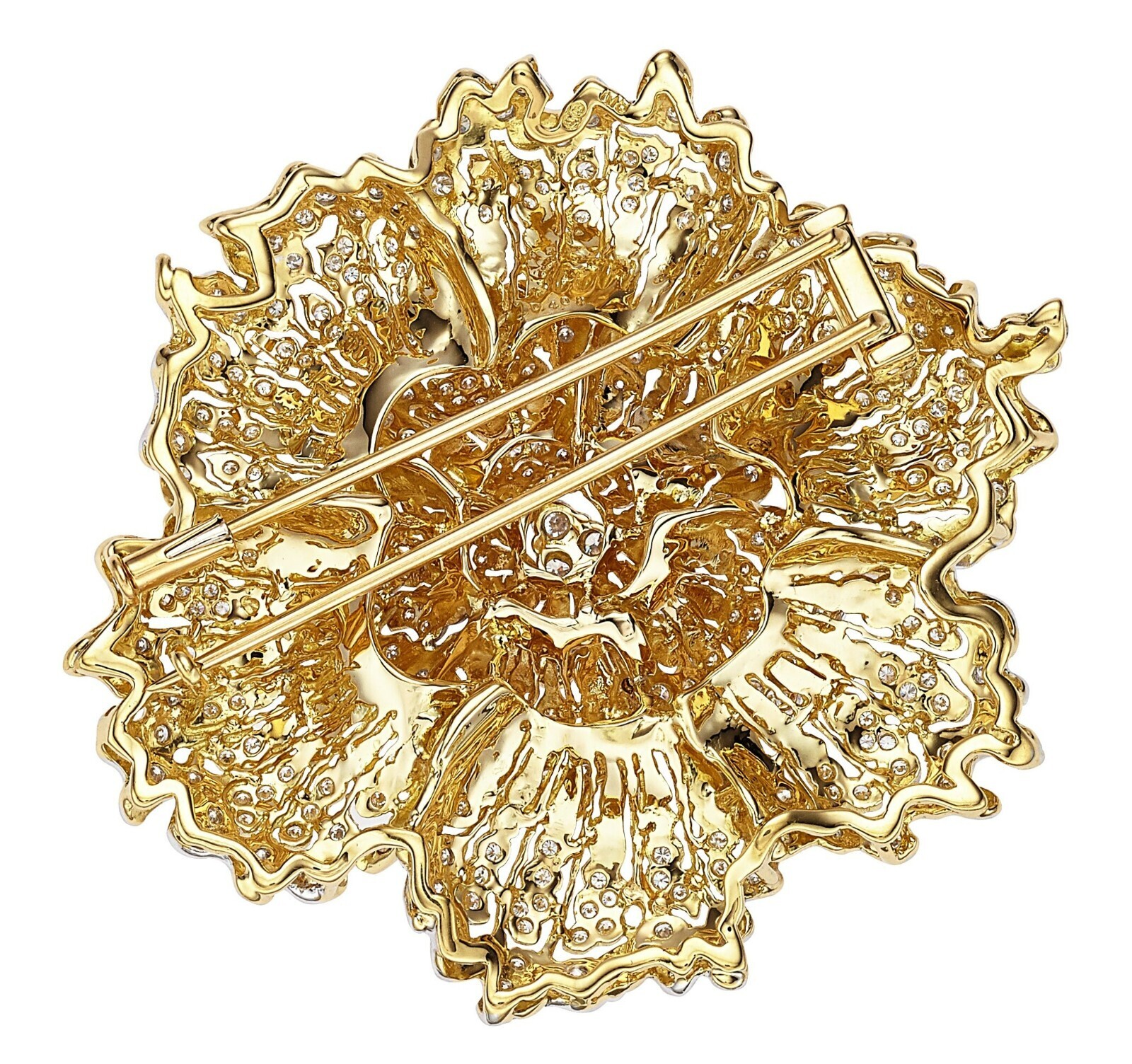- 18k Two-Tone Gold Large Flower Brooch w/ 4.15 ct Diamonds Gorgeous