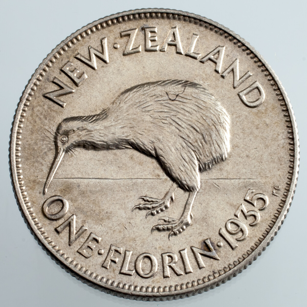 - 1935 New Zealand Florin AU Details (Scratched) KM #4
