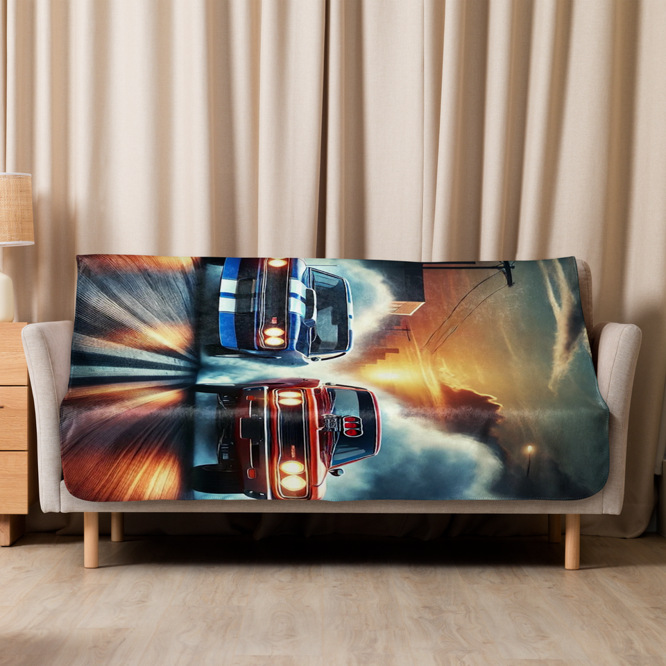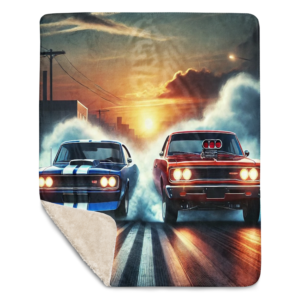 - 1960s Muscle Car Racing Sherpa Blanket – Classic Retro Drag Race Design, 50"X60"