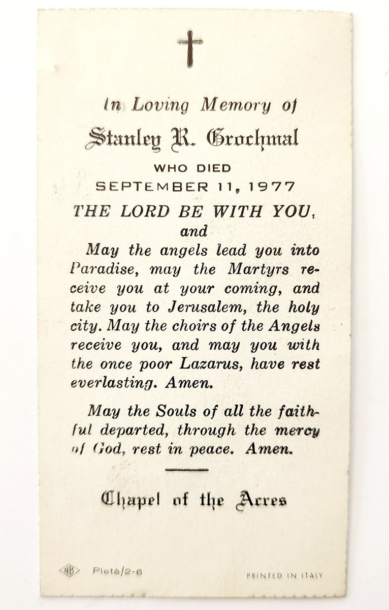 Primary image for 1977 Prayer Funeral Card Stanley Grochmal Chapel Of The Acres Massachusetts CHXB