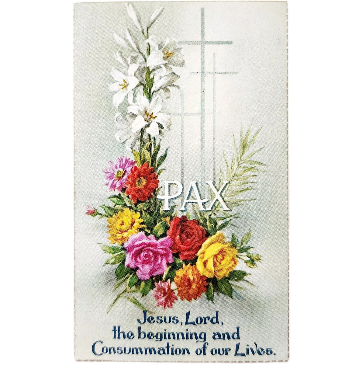Primary image for 1985 Prayer Funeral Card John Beckman Italy Print Flowers Cross Religion E10