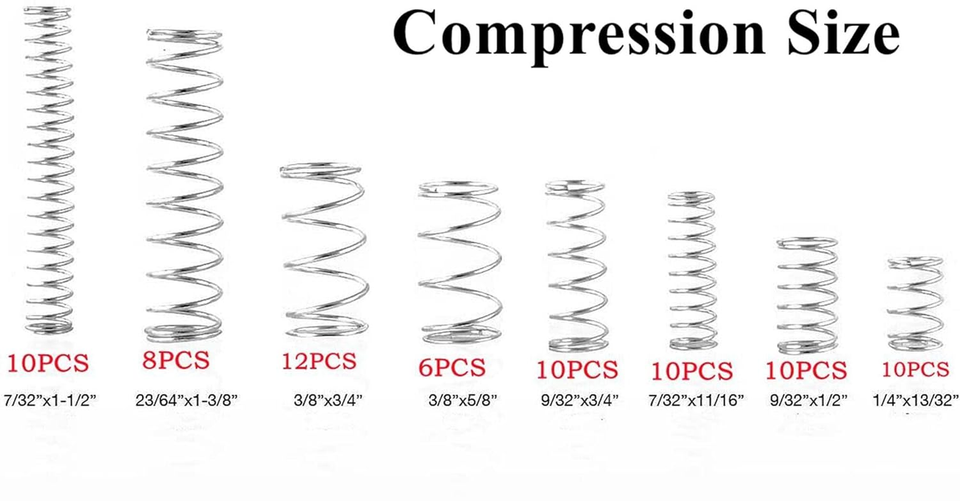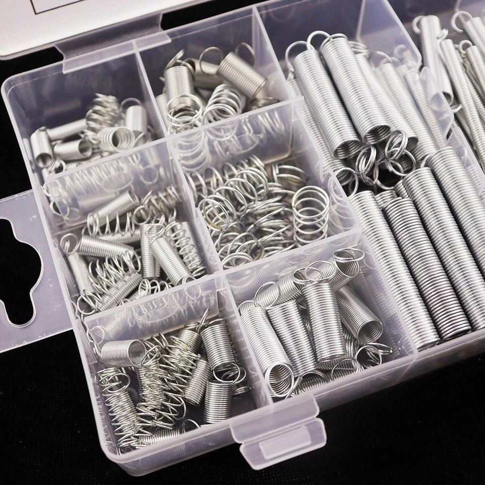 - 200 pieces of compression and extension springs in various sizes - Made from rust-resistant zinc-plated steel for enhanced durability - Includes a clear plastic storage box for organized and safe storage - Perfect for automotive, appliance, medical, and electronic applications - Versatile assortment meets a wide range of project requirements