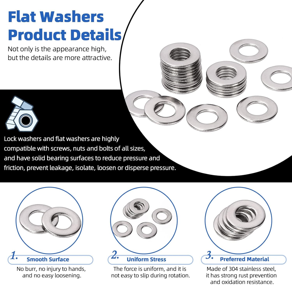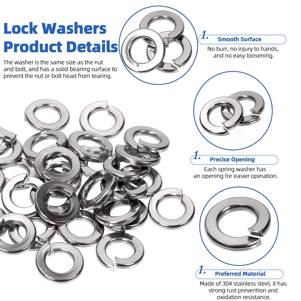 Matching washers included in 1/4", 5/16", and 3/8" sizes.