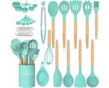 - 24-Piece Silicone Kitchen Utensils Set with Holder – Wooden Handles – Green