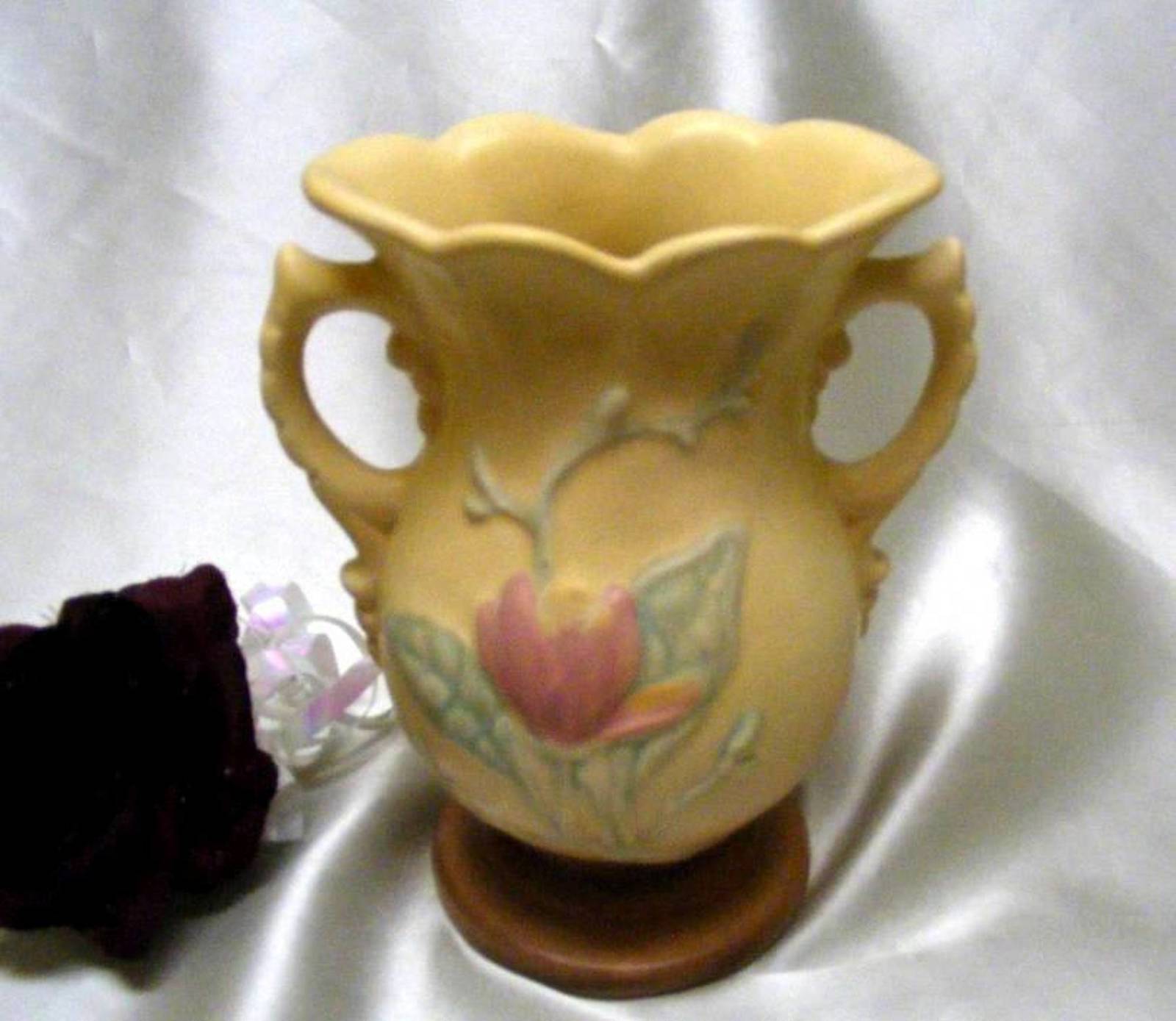 - 2466 Antique Hull Pottery Magnolia Two Handled Vase