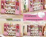 Discover our innovative toy storage organizer, designed to bring order and efficiency to your child's play area. This organizer boasts ample storage options, including spacious top shelves, eight versatile storage bins, four open compartments, and two single-door cabinets, making it perfect for organizing books, toys, clothing, and even snacks. Our storage solution offers a flexible bin configuration, with eight removable bins that can be easily rearranged to suit your needs. These bins are available in four large and four small sizes, accommodating both small trinkets and larger items, ensuring a tidy and organized space. Safety is paramount, and our toy organizer includes an anti-tip kit to secure the unit to the wall, preventing toppling and ensuring stability amidst the liveliest of playtimes. This feature, along with the unit's compliance with ASTM and CPSIA standards, makes it a reliable and safe choice for children aged three and up. Thoughtfully designed with children in mind, this toy storage cabinet is set at a convenient height for easy access. The raised edges on the shelves prevent items from falling off, while the smooth, rounded corners and easy-to-use round knobs add to the convenience and safety. This storage organizer is not just functional but also stylish, making it a versatile addition to any room. Whether you're looking to enhance a bedroom, revamp a playroom, or add a touch of practical charm to a living area, this organizer fits seamlessly, blending form with function.