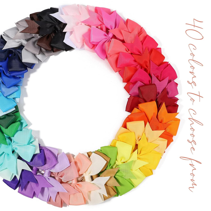 Hair Bows Package Includes ? Color: 40 solid colors (one for each color). You are certain to find a color to match any of your sweet girls' outfit! These girls hair bows, clips are absolutely adorable and well great for girls toddler accessories hair decoration.
