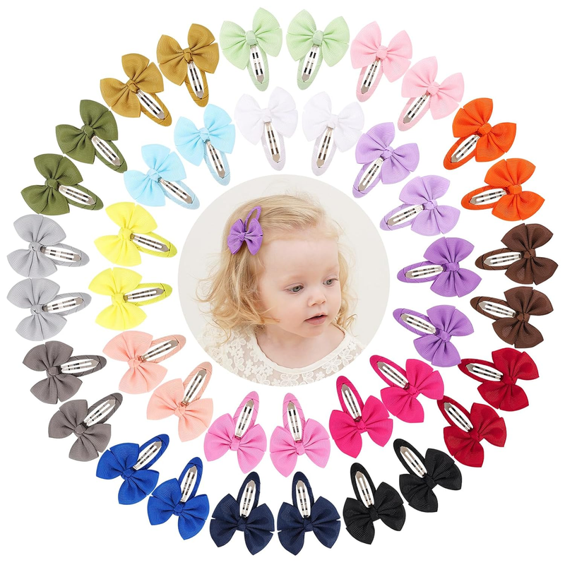 40PCS Snap Hair Bows Clips with Grosgrain Ribbon for Girls, 2 Inch Hair Accessories for Kids and Teens