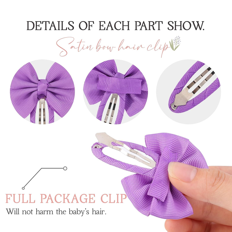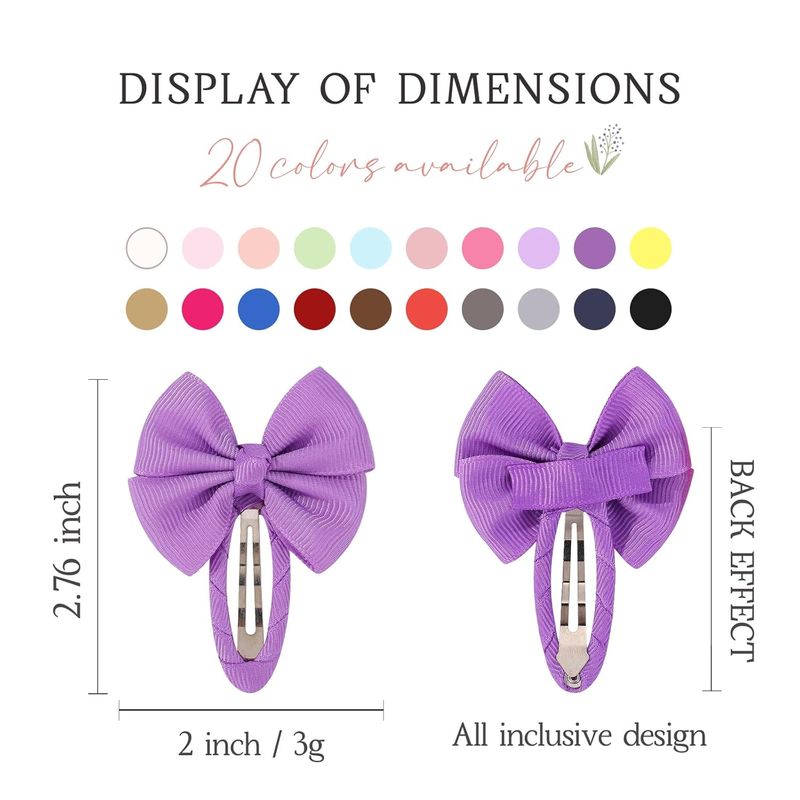 Package Includes ? 40PCS (20 Pairs) hair bows snap clip. This hair clip set fits various kinds of outfits, hair colors, and hairstyles, which makes your little girl stand out every day.