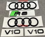 - 5 pcs Black/Green Audi R8 Emblem Set 175mm Front 192mm Rear Rings R8 Rear Badge