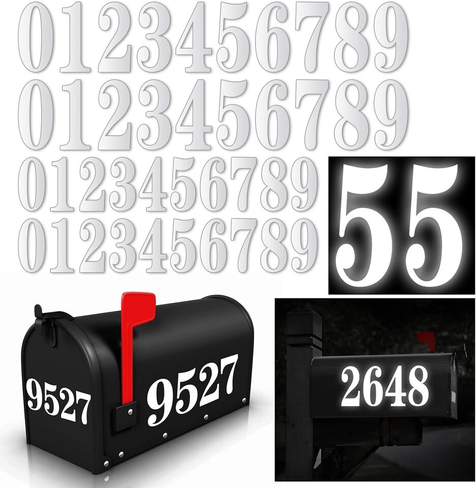 60 PCS numbers: 6 sets of white mailbox numbers, 3" numbers 4 sets, 4" numbers 2 sets, each set contains 10 numbers, from 0 to 9, 60 numbers in total.