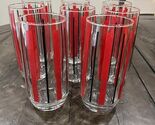 - 8 Vintage Anchor Hocking 12 Oz 6" Red & Black Vertical Stripes Glass Tumblers