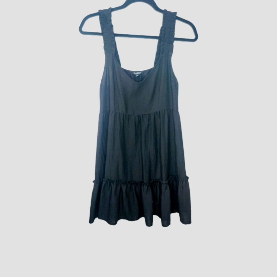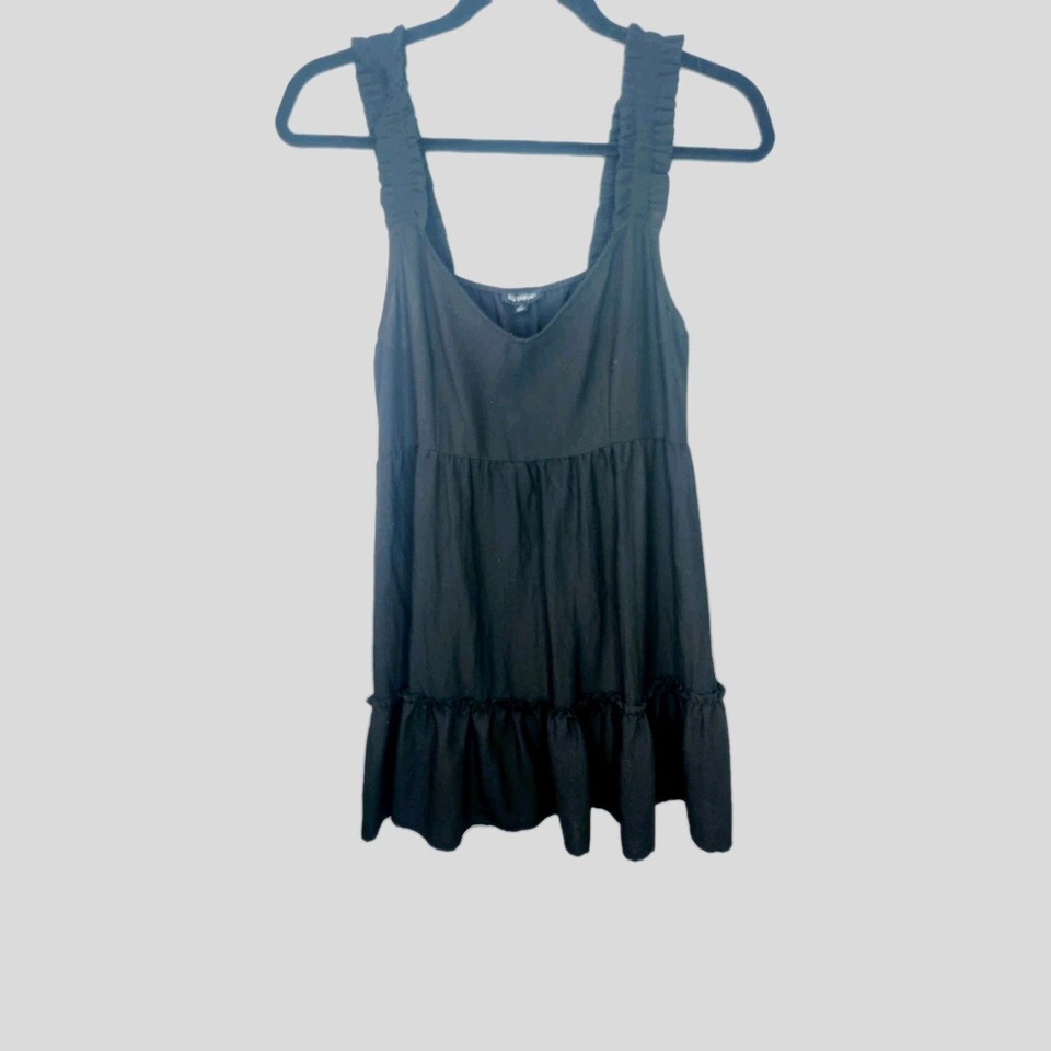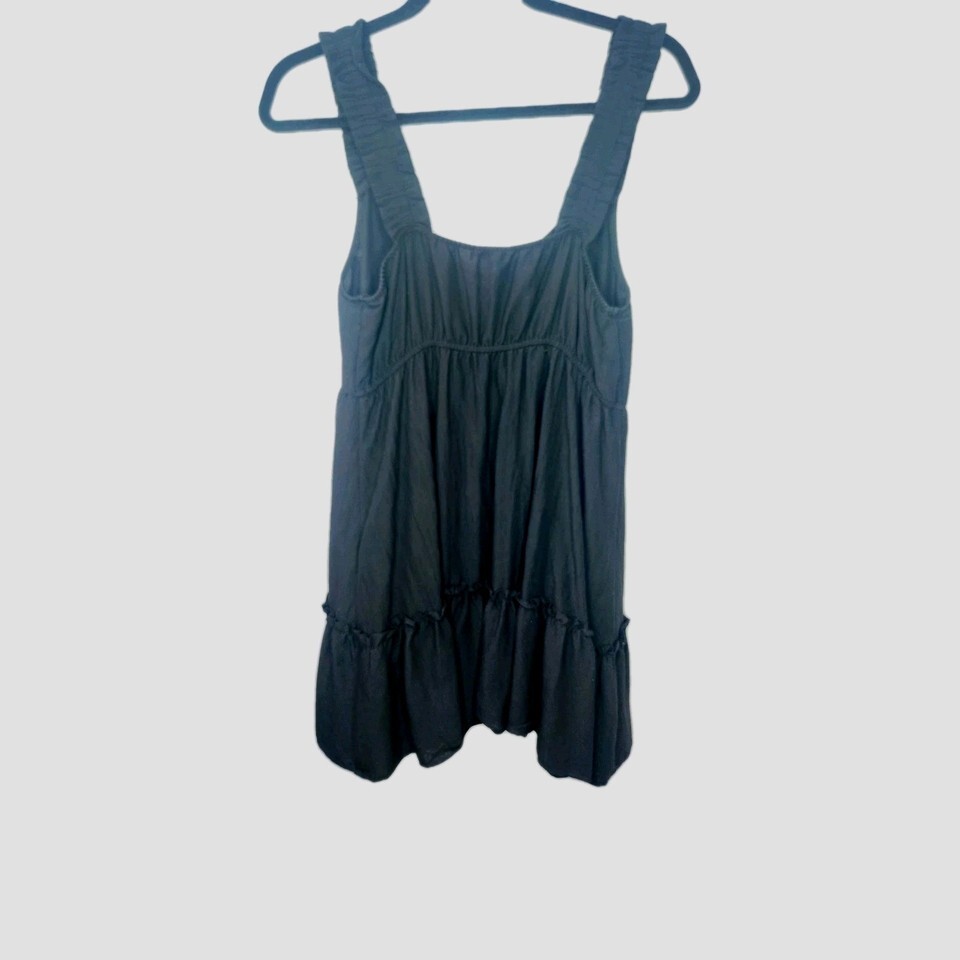 - Anthropologie L Blu Pepper Black Dress Boho Smocked Babydoll Tiered Ruffle Trim