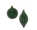Add a touch of modern elegance to your holiday decor with the Beaded Glass Ornaments. Featuring wintry green tones and elegant beaded touches, these ornaments come in traditional ball and oblong shapes with a sophisticated ribbed texture. The delicate string hanger and swirled glass ornament cap complete the design, making them perfect for your Christmas tree, wreath, or mantle garland. Sold in a set of 6 pieces with two assorted designs, these beautiful ornaments are sure to make a statement in your seasonal display.