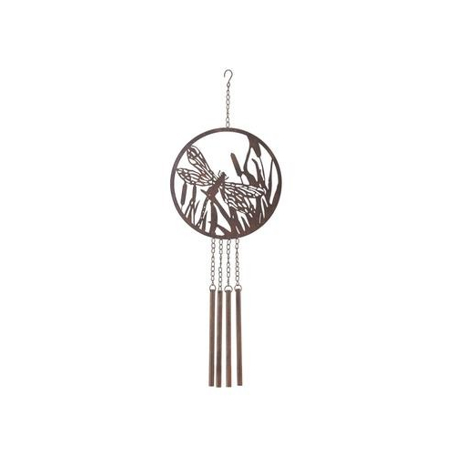 Whimsical Dragonfly Design Features delicate cut-out dragonfly and cattail accents for a charming, nature-inspired look. Durable Metal Construction Made from high-quality iron with a distressed bronze finish for long-lasting outdoor beauty. Soothing Melodic Chimes Creates a calming atmosphere with gentle sounds perfect for porches, patios, and gardens. Suitable for both indoor and outdoor use use only