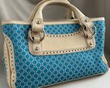 Primary image for Céline Macadam Canvas Cream Leather Hand Bag Aquamarine Blue Purse
