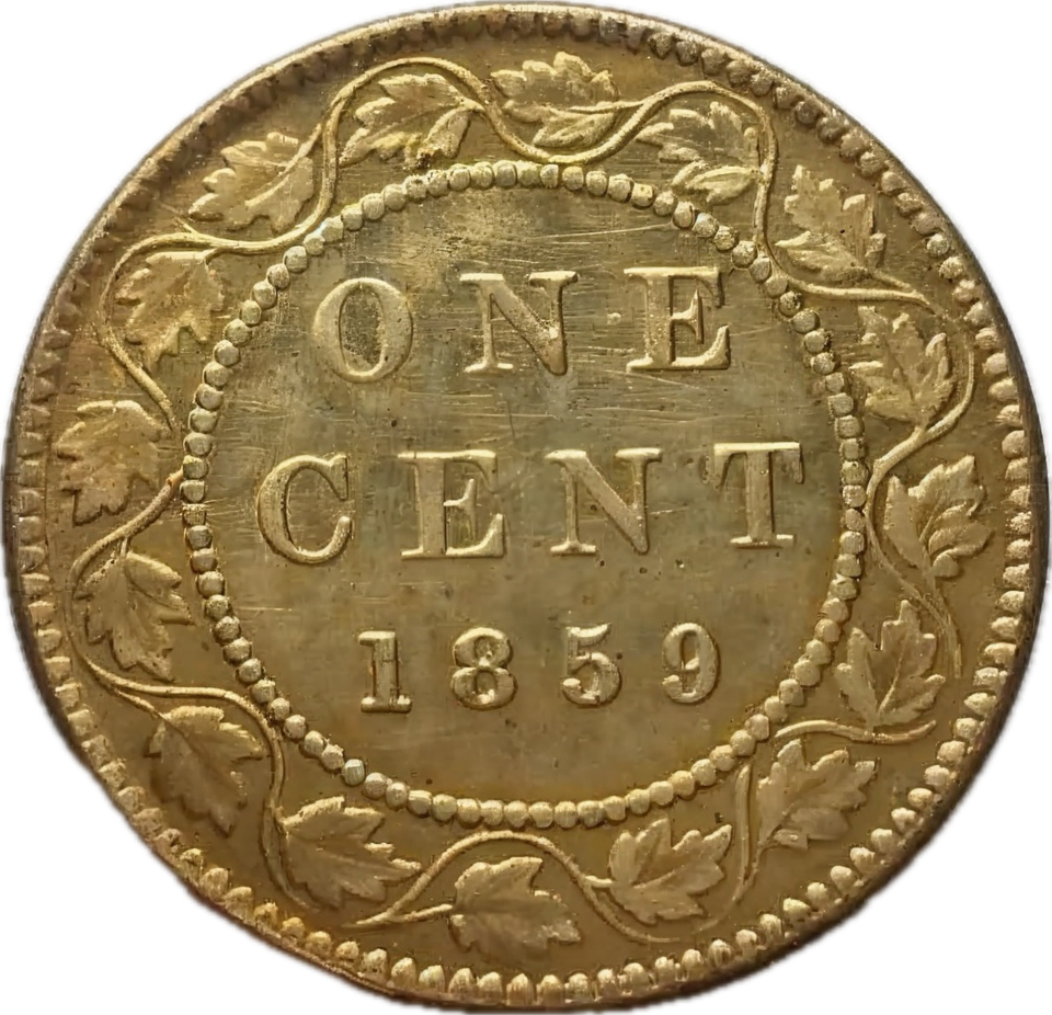 - Canadian One Cent 1859 – Restrike of the Victorian Maple Wreath Design